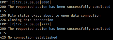 PORT**orEPRT(but only 1 of them) to make it establish a connection with the <IP:Port> you want to scan:PORT 172,32,80,80,0,8080