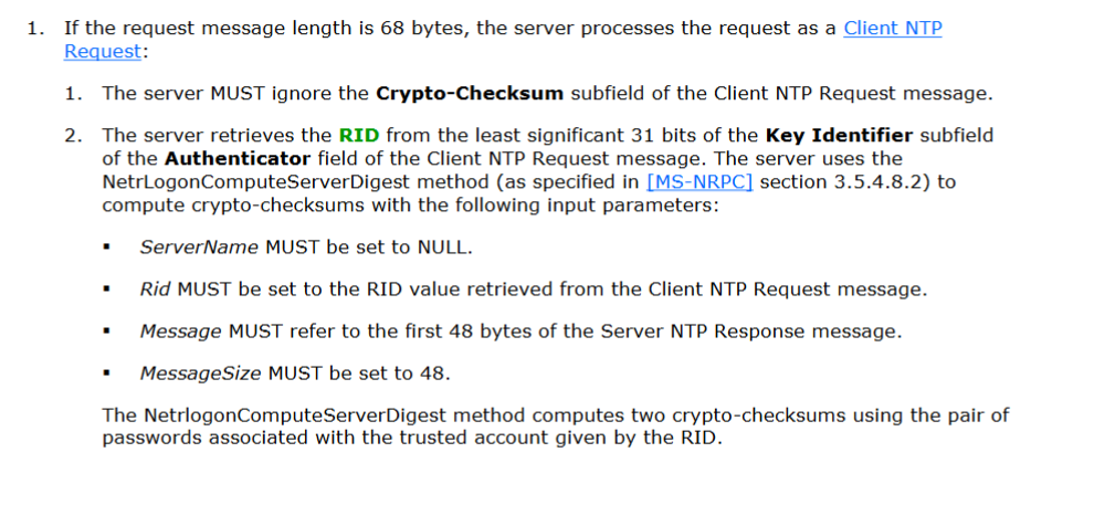 According to the description in the Microsoft official document above, users do not need any authentication; they only need to fill in the RID to initiate a request, and then they can obtain the cryptographic checksum. The cryptographic checksum is explained in section 3.2.5.1.1 of the document.